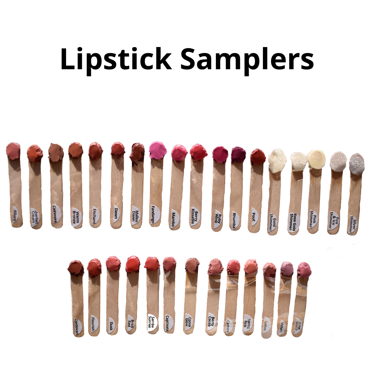 Contains a sample of every lipstick we make, plus the shimmer glosses.